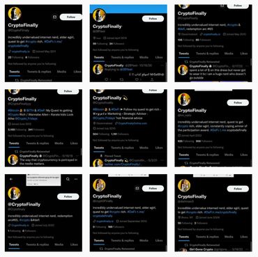 Please look out for common misspellings of @CryptoFinally when searching for my social media accounts. Please do due diligence when communicating with strangers on the internet.